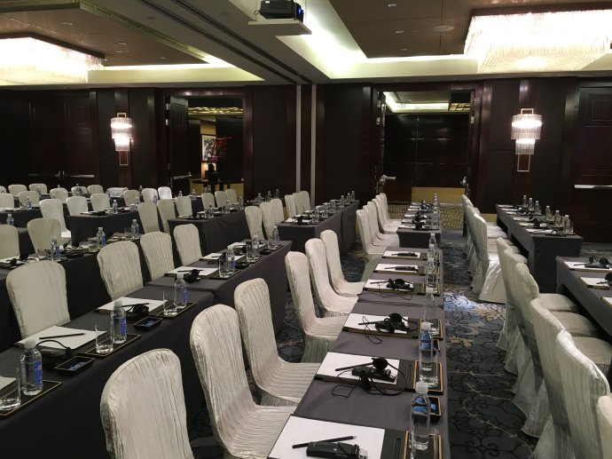 2016.1.15在北京四季酒店举办的中国对外投资环境和社会风险管理研讨会,九鼎天下翻译公司为其提供了同声传译设备租赁服务,来参会的嘉宾共计100人左右。
